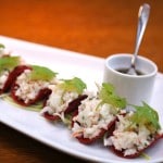 crisp beet wrap, citrus spiked aioli and scented soy