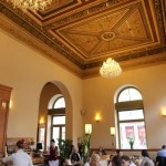 Savoy evokes the atmosphere of the cafes made popular during the first Czechoslovak Republic. It’s remarkable interior is dominated by a Neo-Renaissance ceiling dating back to 1893 and the twinkle of chandelier decadence.