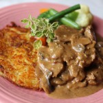 mushrooms and creamy demi-glace, rosti potato