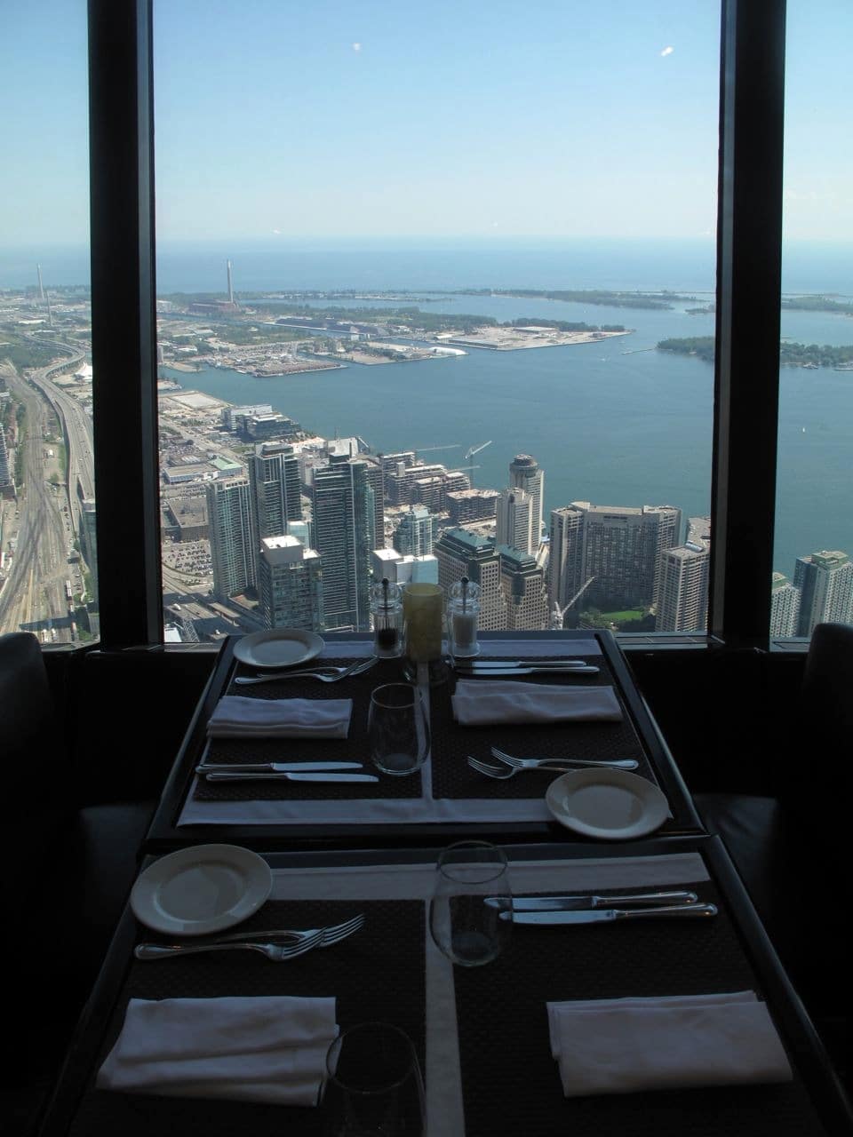 Once safely on solid ground we quickly changed out of our gear and were then escorted up the elevator to 360 restaurant. My mother took my sister and I up to the 360 for lunch when I was just a little kid, maybe in Grade 5. Even though I was so young, I will never forget how magical the experience was: watching the room spin and staring out over the city which already seemed so massive to me from the sidewalk.
