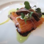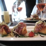 We were seated by a window and greeted by the restaurants Chef Peter George who welcomed us to the table and talked of his passion for sourcing local, fresh food. I love the fact that Peter sources the herbs used in his dishes at an herb garden located on one of the towers terraces. When we arrived at the table there was a bottle of Henry of Pelham Cuvee Catharine Rose Brut, one of my favourite bottles from Niagara.