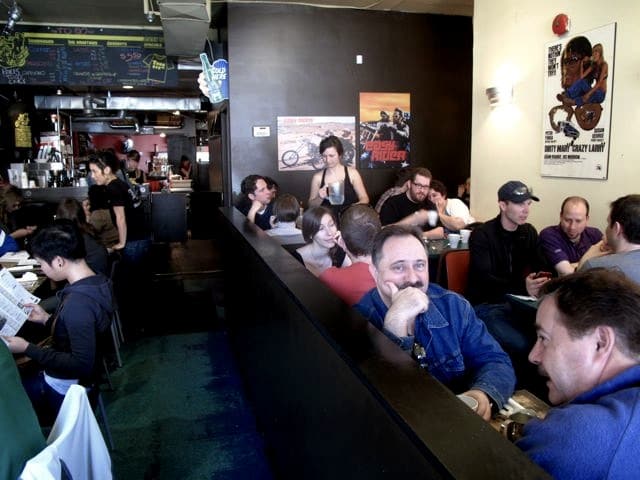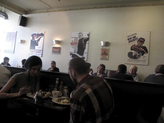 Where King and Queen Street meet in the west end you will find Roncesvalles Village and the iconic Easy Restaurant. This is one of the cities most famous brunch locations and a few minutes walk from my Parkdale Palace. It was a lovely sunny Sunday morning for a stroll and yummy brunch. The interior of the restaurant is full of iconic old film posters and plays along well with a Biker Theme (aka Easy Rider).
