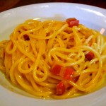 spaghettti carbonara: pancetta, egg, tellicherry black pepper and pecorino