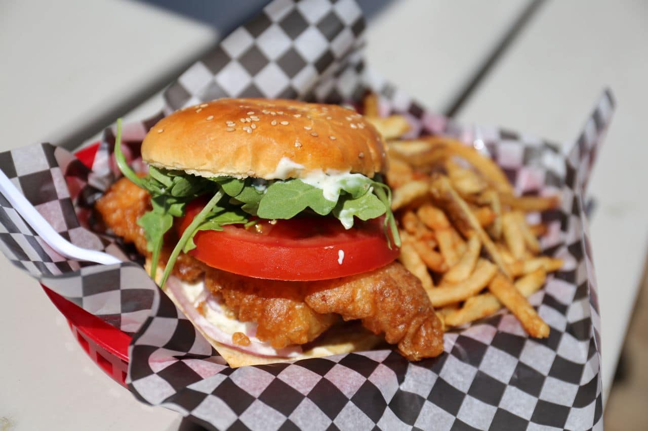 beer-battered haddock, viennois bun, tartare, arugula, tomato, red onion