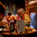 I enjoyed a sluggish morning with Meaghan at Insomnia Cafe after a hard hitting night of beer indulgence. Insomnia Cafe is one of the most popular brunch spots in the city and most certainly a favorite in The Annex hood. We found comfy chairs at the back of the restaurant and fumbled through our menus. The restaurant has a great bar space and the walls are decked out with work created by local artists. Our server was a charmer, bringing us two “glasses of orange juice” in shot glasses to give us a bit of a vitamin boost.