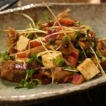 organic tofu, hamakua tomato, red onion, scallion, kaiware sprouts