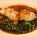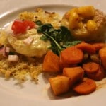 grey snapper, bok choy, roasted tomato, okinawan sweet potato mash, coconut lime sauce