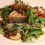 green beans, tapenade, sauce vierge, tomatoes, confit potatoes