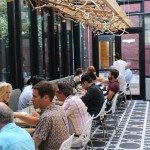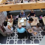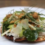 Set in a refurbished brick and beam building that combines French tile work with industrial fixtures, natural wood, and glass and steel finishes, the restaurant offers a bar and lounge setting, elevated dining room and plush, sun soaked atrium. It was in this glass enclosed, breezy space that the two of us plopped ourselves down for a fine feast. A long lattice wood sculpture which appeared a bit like a timber-web floated above our heads as we whisked our fingers through the menu.