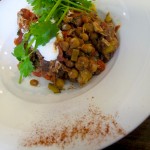 rockin’ morrocan free-run chicken & vegetable stew served on cous- cous and topped w/ sour cream, scallions & cilantro