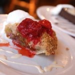 The paper placemats here are hilarious, offering guests a quick education via “8 Easy Steps: how to properly feast on a whole lobster at the dinner table.” I opted to indulge in surf meets turf. Fans of the fish should order the restaurants signature “Lobster on the Wharf,” featuring freshly steamed lobster, melted butter, lemon, boiled baby potatoes and sour cream. A juicy New York Striploin accompanied by frites, fried onions and mushrooms will satiate meat cravings for those who shy from seafood. I wrapped up the evening while forking my way through two sweet treats, a decadent chocolate ganache torte and summer ready strawberry rhubarb crumble.
