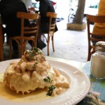 At this point my fellow diners were beginning to gawk as two more plates squeezed onto my table. The roumeliotiko proved that one doesn’t have to serve up fancy in order to impress ones palate. The dish featured a perfectly crisp pita topped with seasoned shredded pork and sweet grilled tomato. My mind was finally blown when a plate of mastihato. I had never seen anything like it and after scooping a heaving fork into my mouth I couldn’t help but blurt “oh my god.” The simple dish plays to all of my culinary carnal pleasures, when savoury is made sweet, the crunch and munch and tender meat doused in cream. A tender chicken breast is sautéed and sliced, perched on top of a kadafi nest (a Greek walnut and almond pastry) and swims in a bacon adorned cream. When I licked my plate clean I think an angel got her wings!
