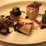 fig puree, potato fondant, glazed beetroot, baby carrots