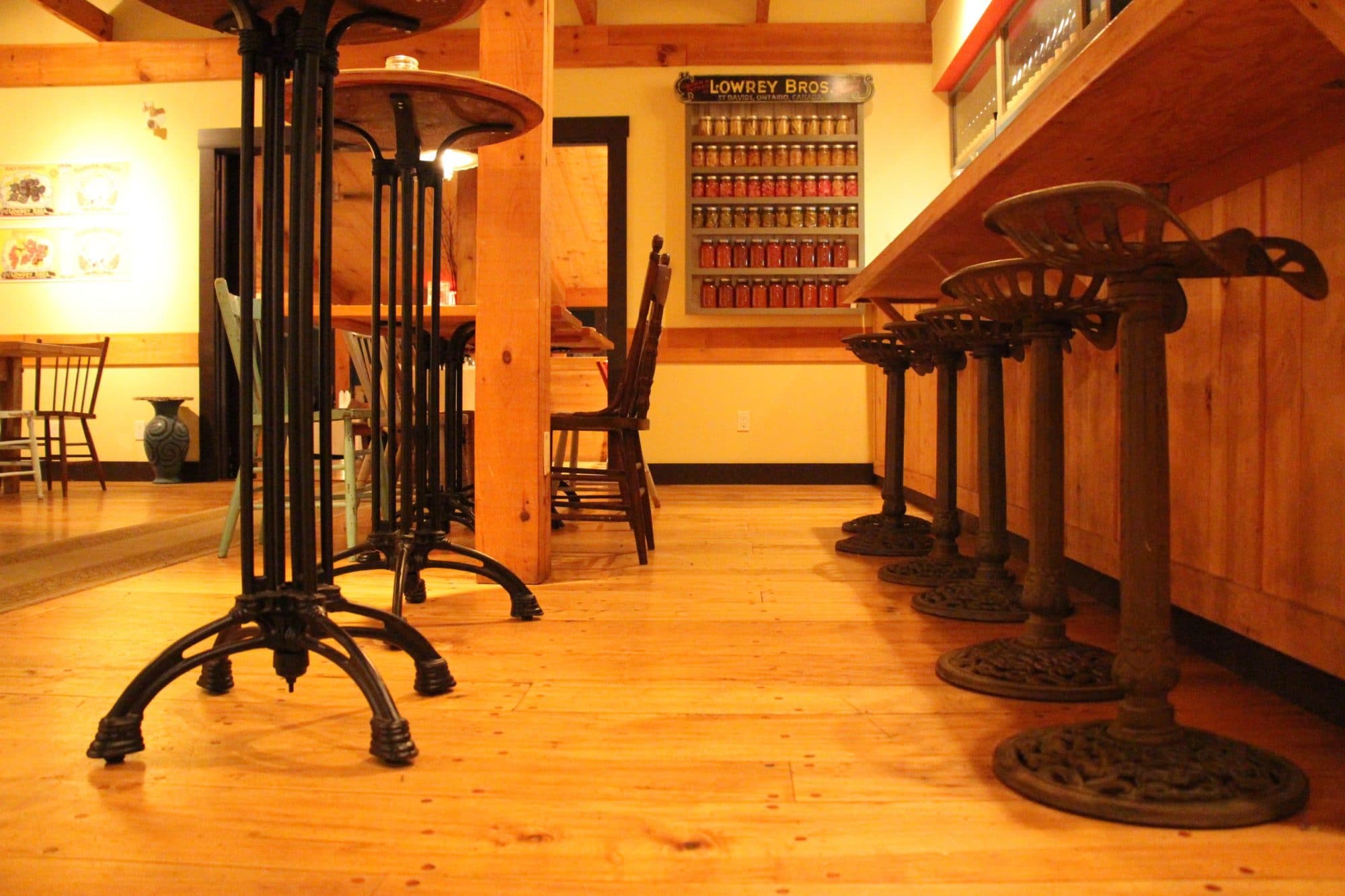 The popular Niagara on the Lake winery restaurant has a cozy farm house chic feel featuring a wild collection of antiques, mason jar motifs and tractor bar stool seating. The property is steeped in Canadian heritage and is considered one of the most historically significant farmhouses in the region. A painting of the property by one of the students of the Group of Seven Masters actually hangs on the wall by their tasting room.