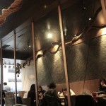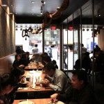 I arrived at this new hole in the wall restaurant shortly before 2pm and was not shocked to encounter a line down the street. Members of the Toronto Ramen cult are all too willing to stand in line patiently for their restorative broth fix. Once inside I sat on a comfy bench and watched as patrons smiled with noodles dangling from their chins.
