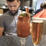 Dale spent the evening conquering the mighty Canadian Caesar served in dainty mason chalice. T Bar playfully showcases several of these classic Canadian cocktails which are prepared with house made clamato. Dale’s duo included a classic tip of the hat to the original recipe and The Checkout prepared with bacon infused vodka and adorned with hard boiled egg, crispy bacon and pickle spear.
