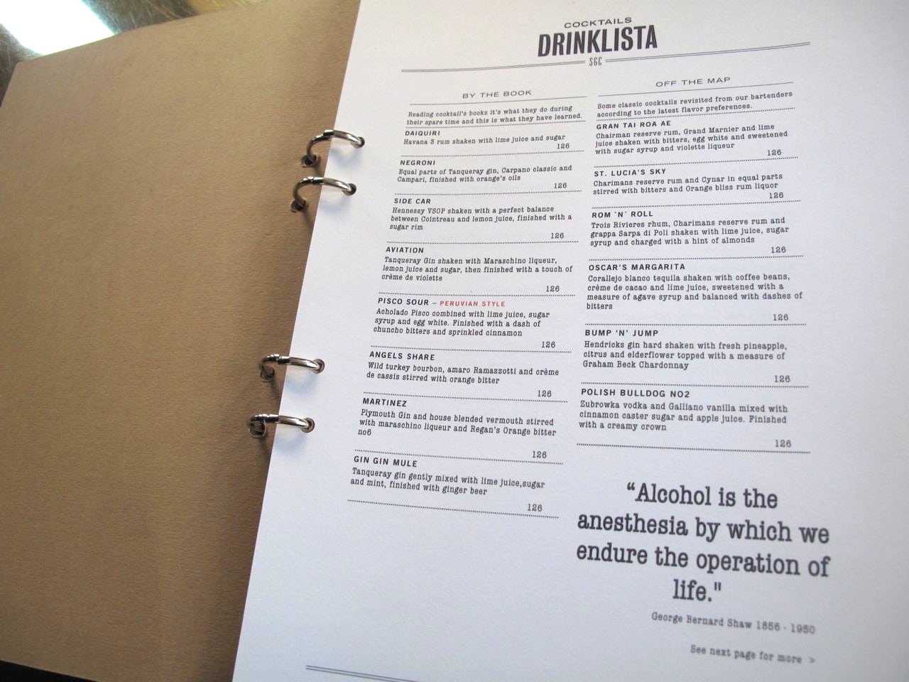 My second dinner in Stockholm was at Teaterbrasseriet located in the lobby of my hotel, The Scandic Grand Central. We started off our meal at the bar where we sampled six of the restaurants signature cocktails. After sweetening our pallets with these elixirs we were whisked off to the dining room where we sat on a comfy window side bench.