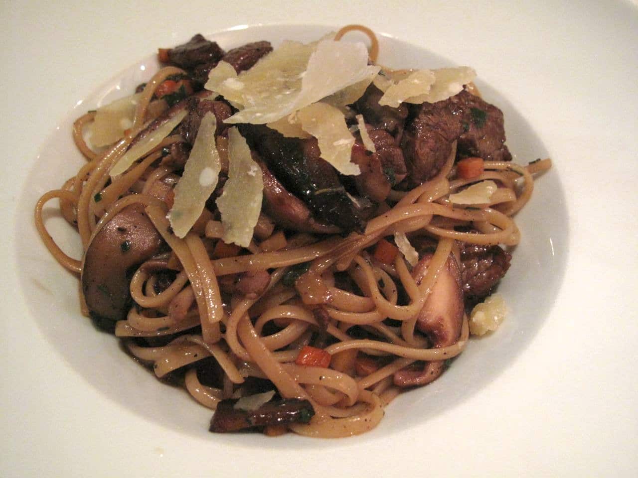 fettuccine, red wine cream, beef tenderloin tips, mushroom, root vegetables