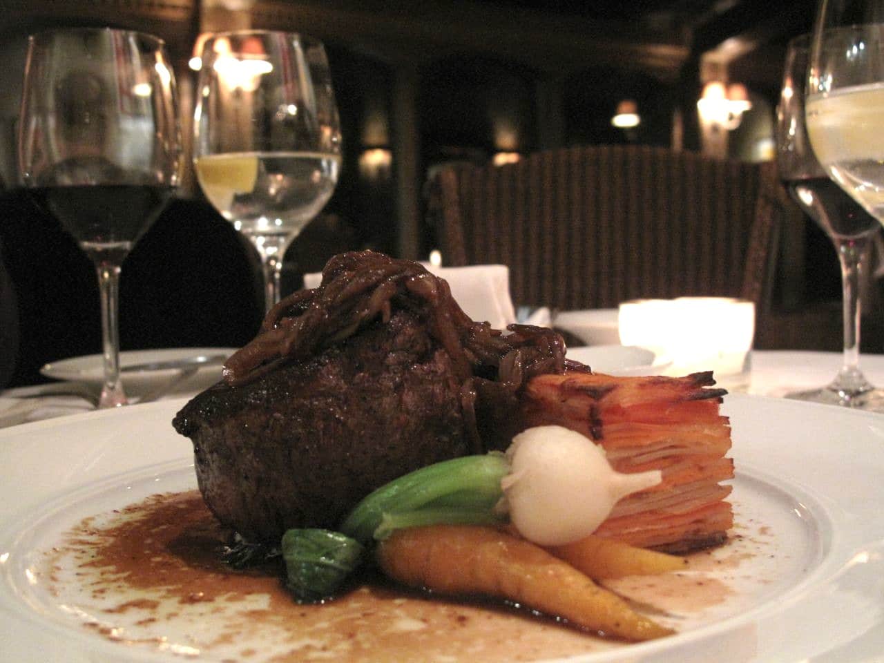 8oz tenderloin, root vegetable dauphinois, caramelized onions, shiitake mushrooms, autumn veg