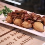 duck fat fried cheddar and potato perogies, caramelized onions, double smoked bacon, sour cream