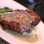 buttermilk marinated chicken, mashed potatoes, asparagus, maple chicken gravy