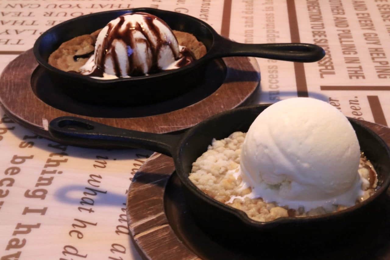 Over the course of the next hour we gobbled up some of the restaurants most popular dishes. Highlights include the top selling duck fat fried perogies courtesy of Wayne’s grandmother, The Great One Burger (featuring a branded 99 on the bun), Southern Fried Chicken smothered in sweet maple chicken gravy and a duo of sweets served in wee iron skillets. Nothing better than a cookie and a cobbler topped with vanilla ice cream to finish off a memorable summer feast..