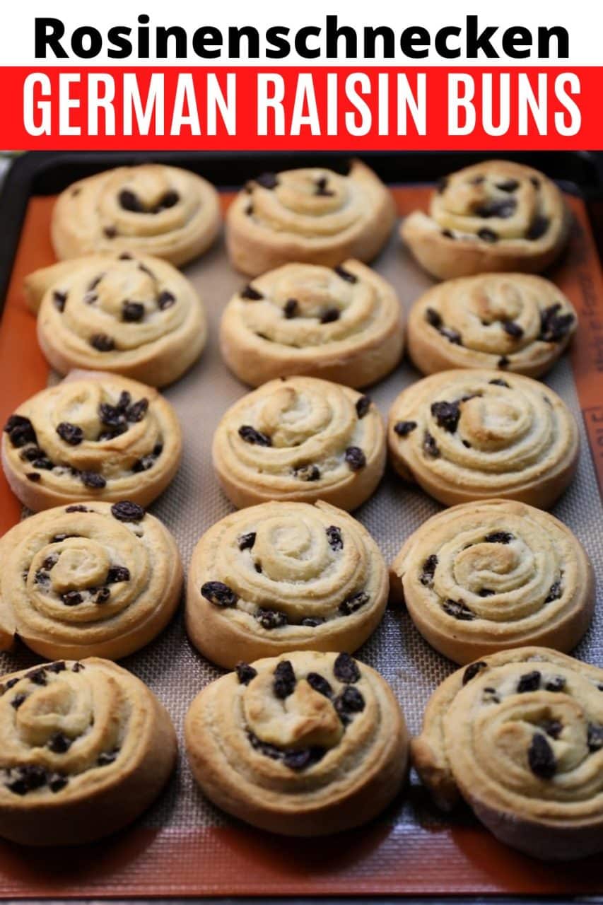 The name comes from “Rosinen” (raisins) and “Schnecken” (snails) — referring to the bread bun’s signature spiral shape.