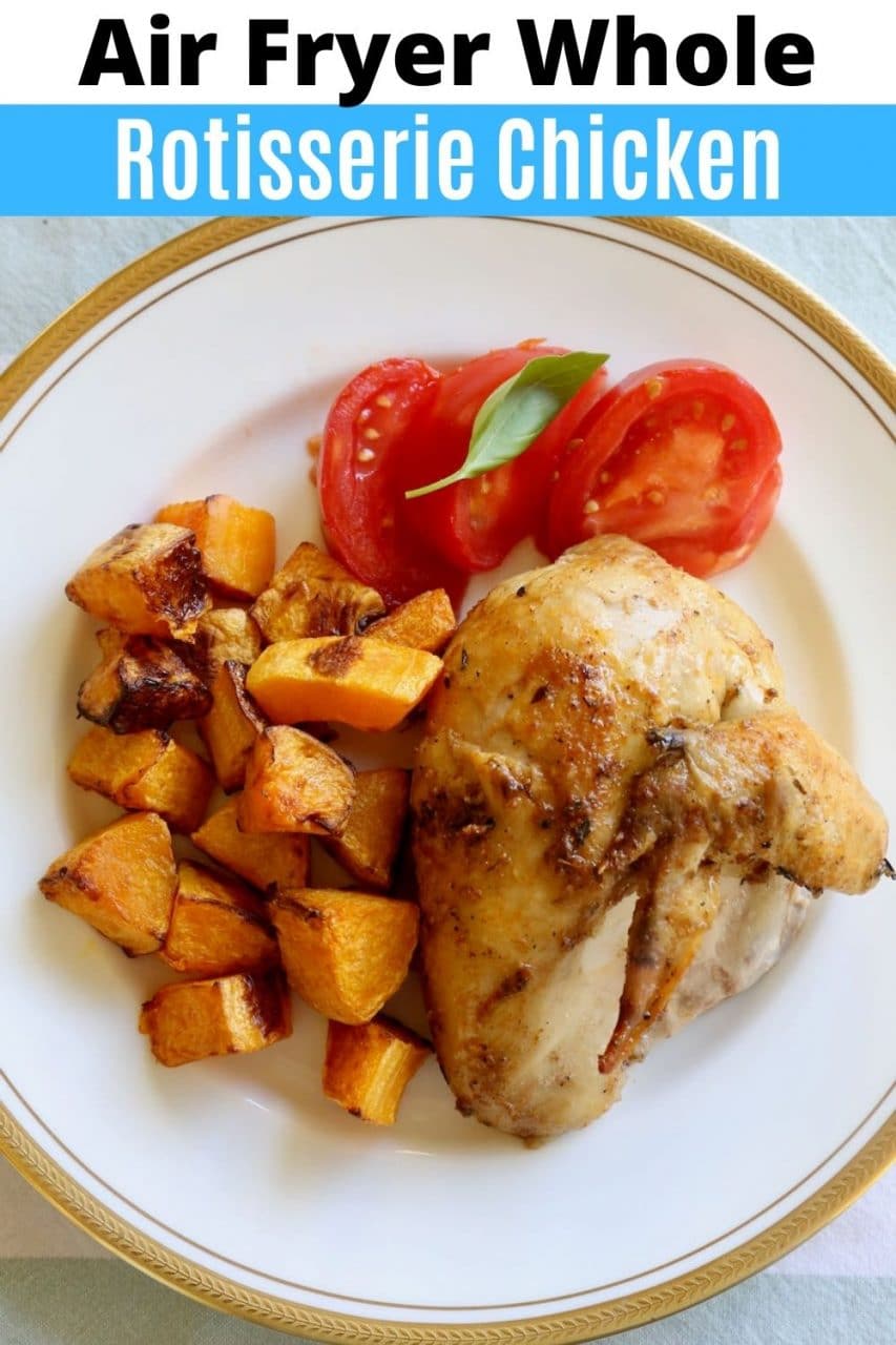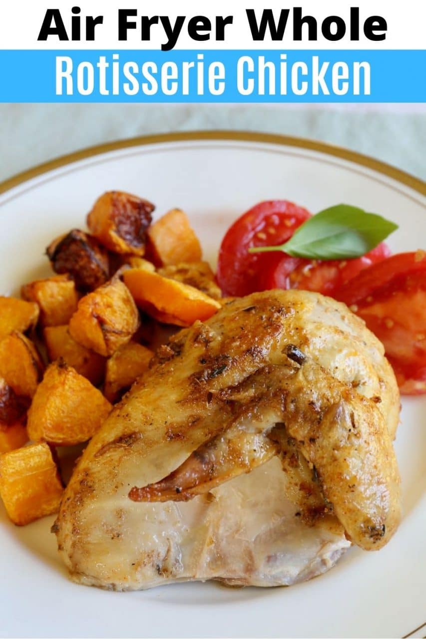 This simple recipe shows you step by step how easy it is to cook a Whole Rotisserie Chicken in an Air Fryer.