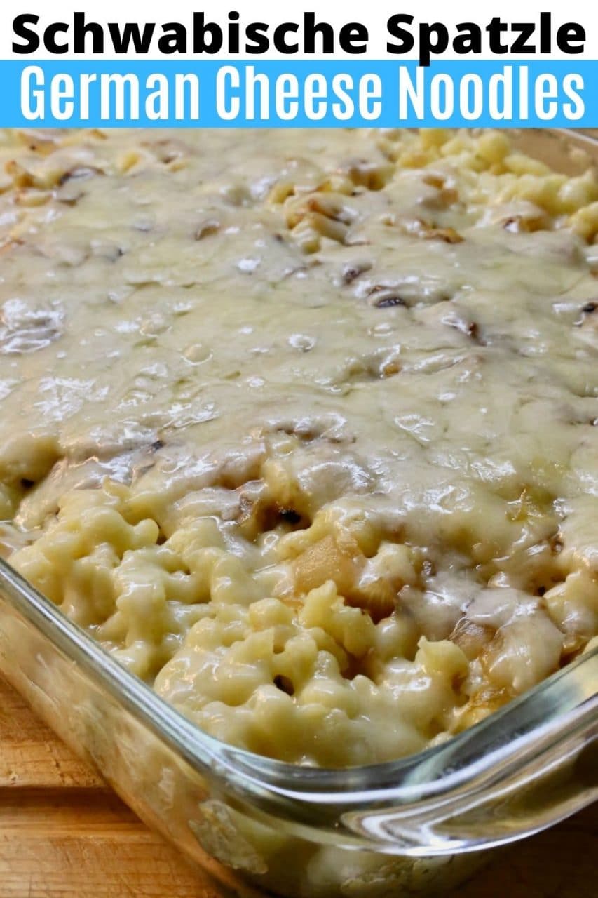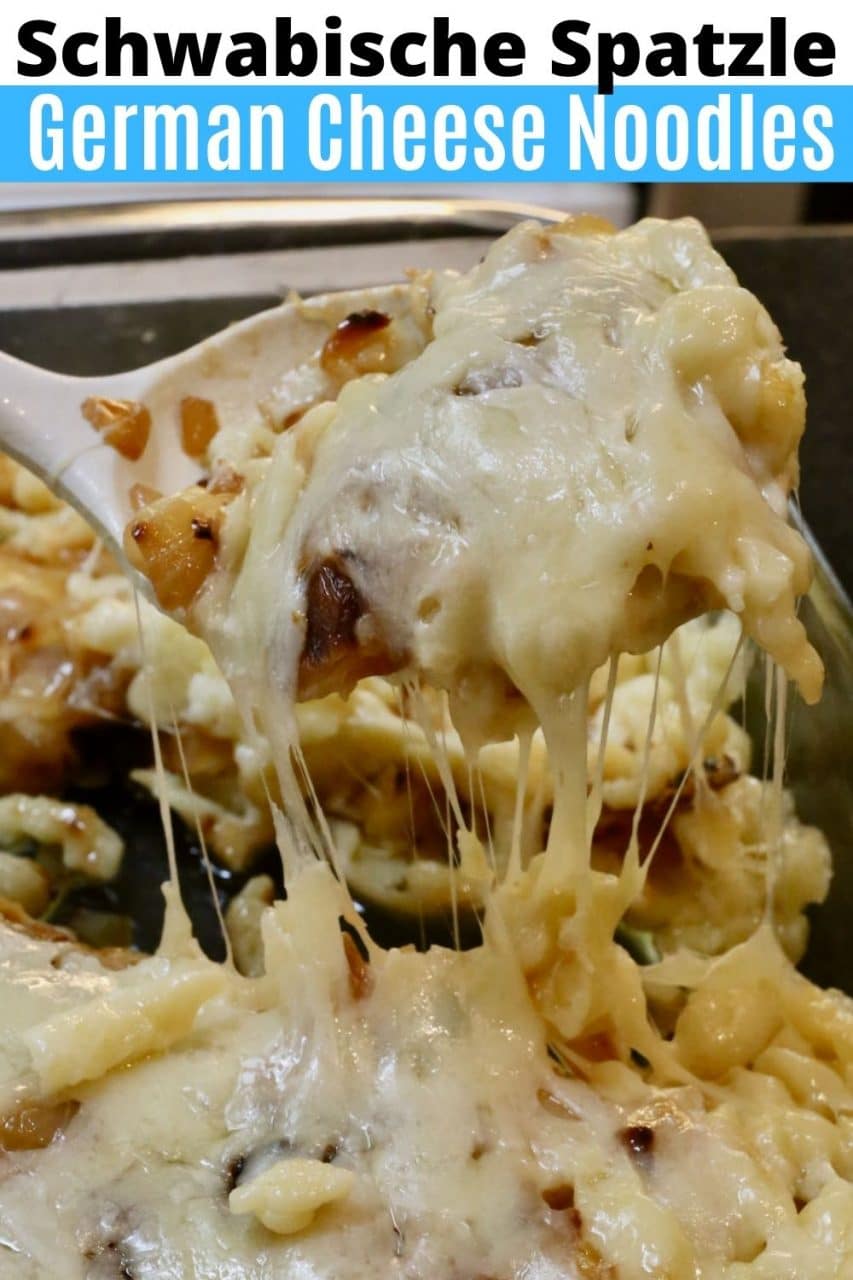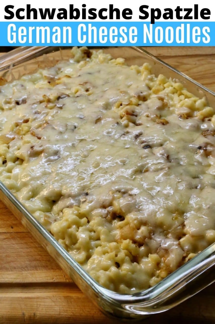 Homemade spätzle noodles are layered with heaps of shredded Swiss cheese and caramelized onions, and then baked in the oven.