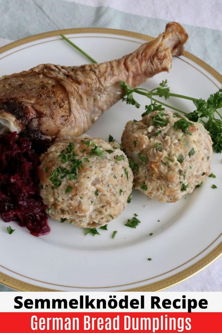 If you’re making simple Semmelknödel you can top them with chopped parsley and serve them with hearty German meat dishes like sauerbraten, pork knuckle or bratwurst.
