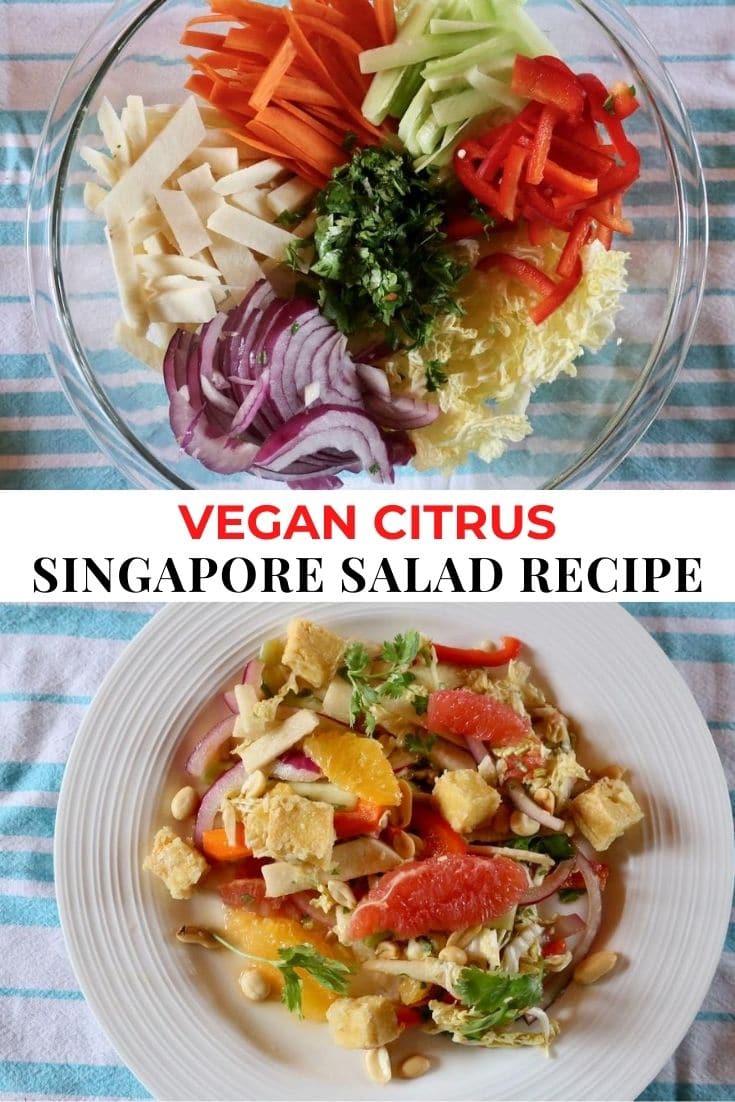 Singapore Salad is the best crunchy, salty, acidic, juicy and sweet dish to serve at a summer Asian-inspired barbecue or healthy potluck dinner party.