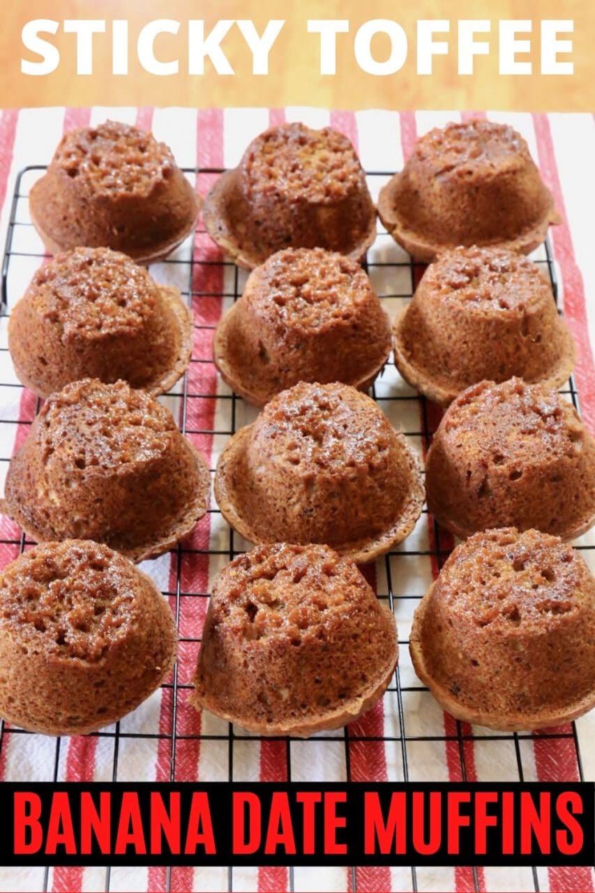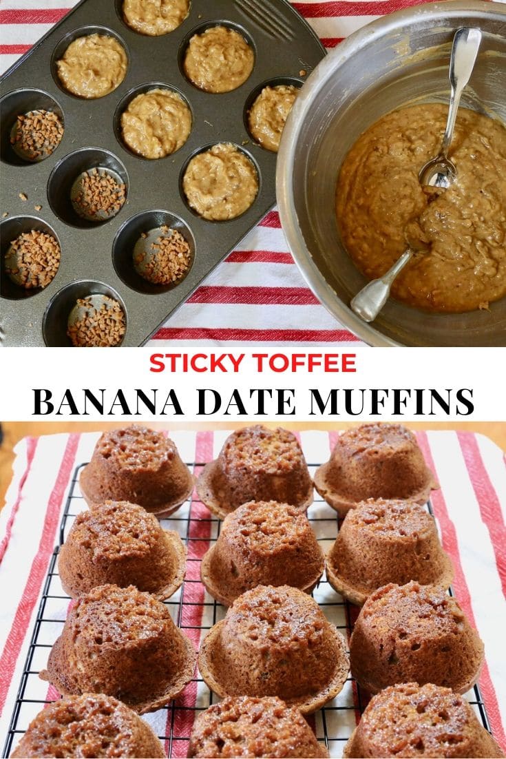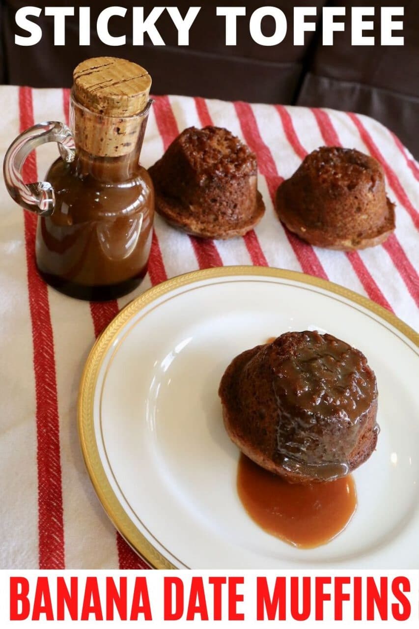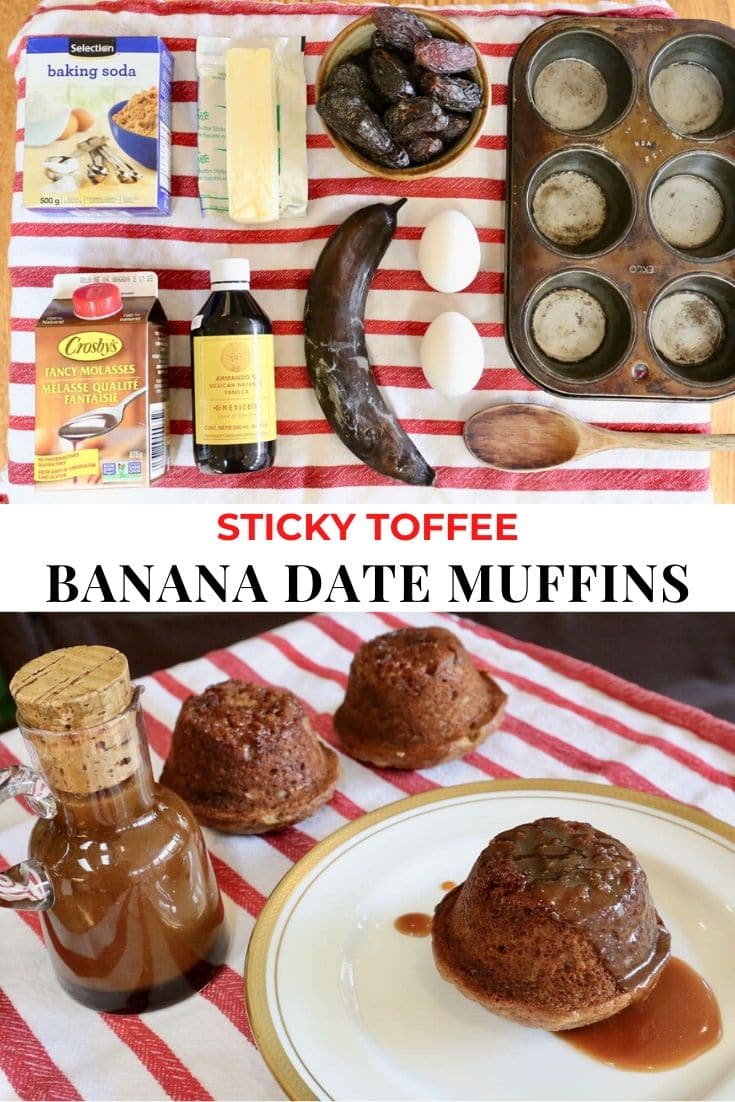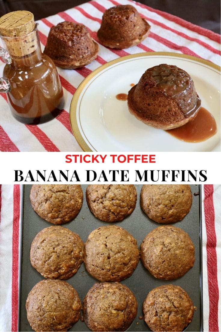 My family’s heritage traces back to England, Scotland, Ireland and France. It’s no wonder our British roots have us craving sticky and sweet Banana and Date Muffins served as Sticky Toffee Pudding for dessert.