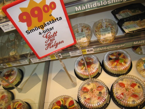 When you’re walking down the aisles of a grocery store in Sweden and spot a stack of Sandwich Cakes in the fridge you’ll notice the garnishes help inform shoppers on what fillings will be found inside.