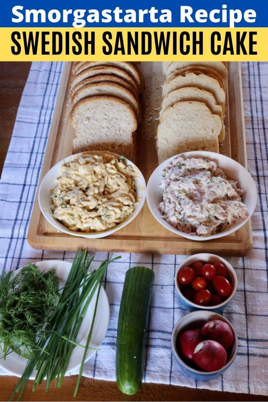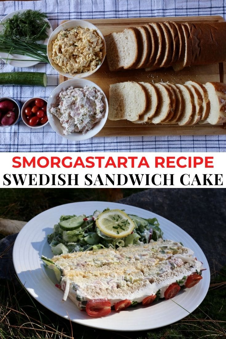 - Some Swedish Sandwich Cake recipes use circular loaves like a traditional rye or pumpernickel loaf. If you opt for these loaves you simply need to take a bread knife and cut around the loaf to create a cake shape. Finish by slicing through the loaf so you have several circular bread slices to layer the Sandwich Cake.