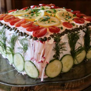 Authentic Smörgåstårta is a beauty to behold, sure to impress your guests at your next luncheon. After slicing into the sandwich cake your guests will be dazzled by the impressive layers of bread and colourful fresh cold salads that make up the tasty interior.