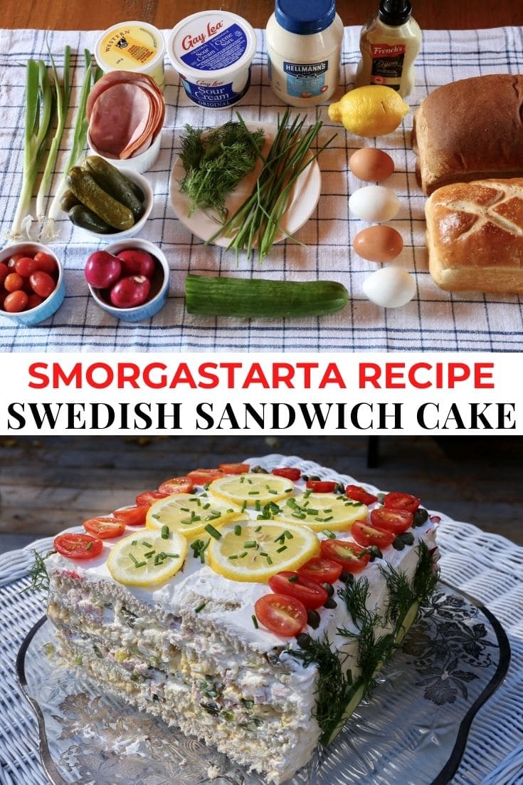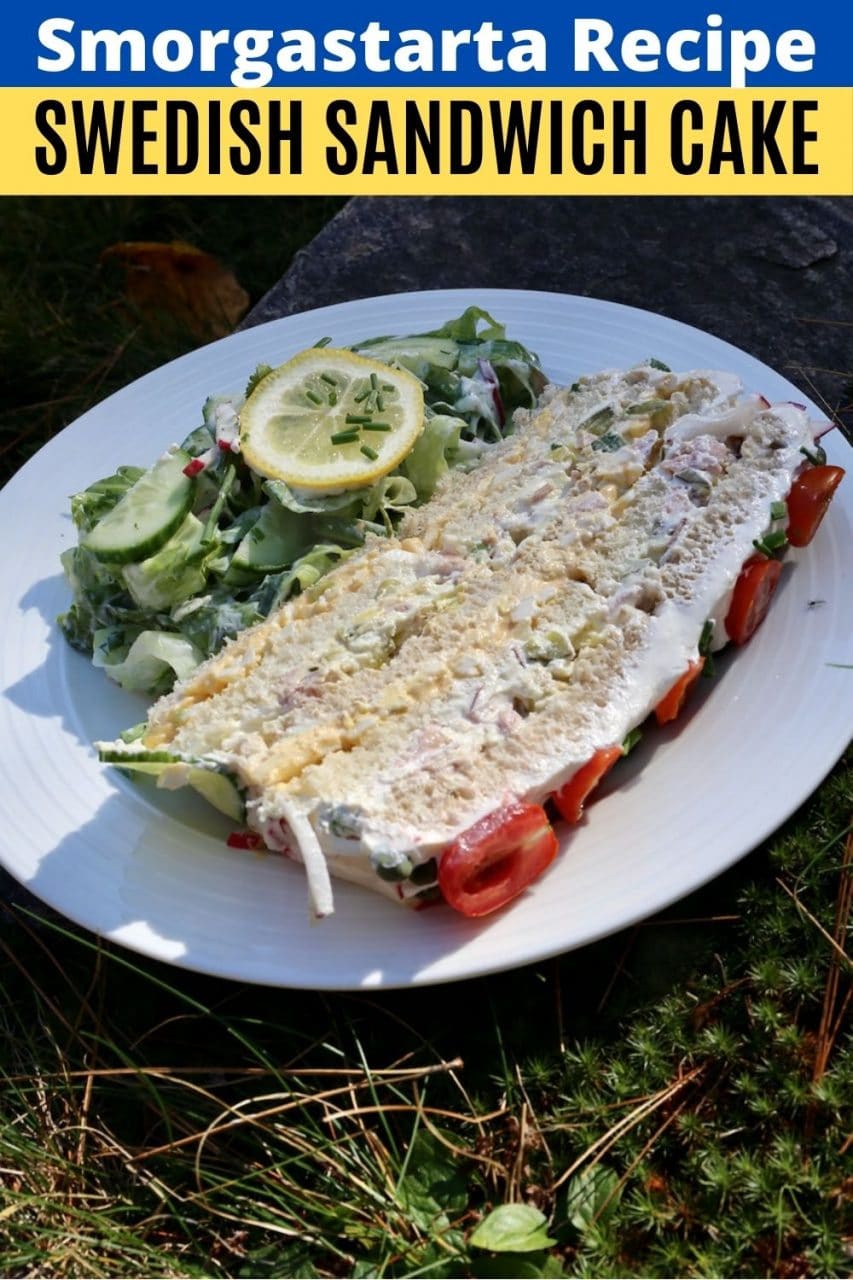 Smorgastarta (also known as Smörgåstårta) is a traditional Swedish Sandwich Cake enjoyed year round, especially during special celebrations like Midsommar, birthday parties and weddings.