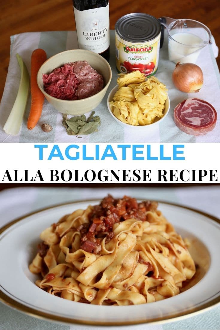Authentic Tagliatelle alla Bolognese recipe ingredients.