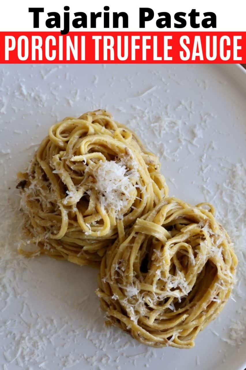 This decadent Tajarin pasta recipe features silky thin threads of fresh egg noodles tossed in creamy porcini truffle sauce.