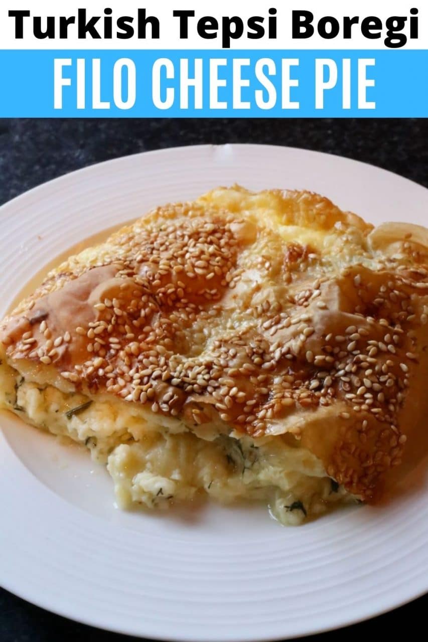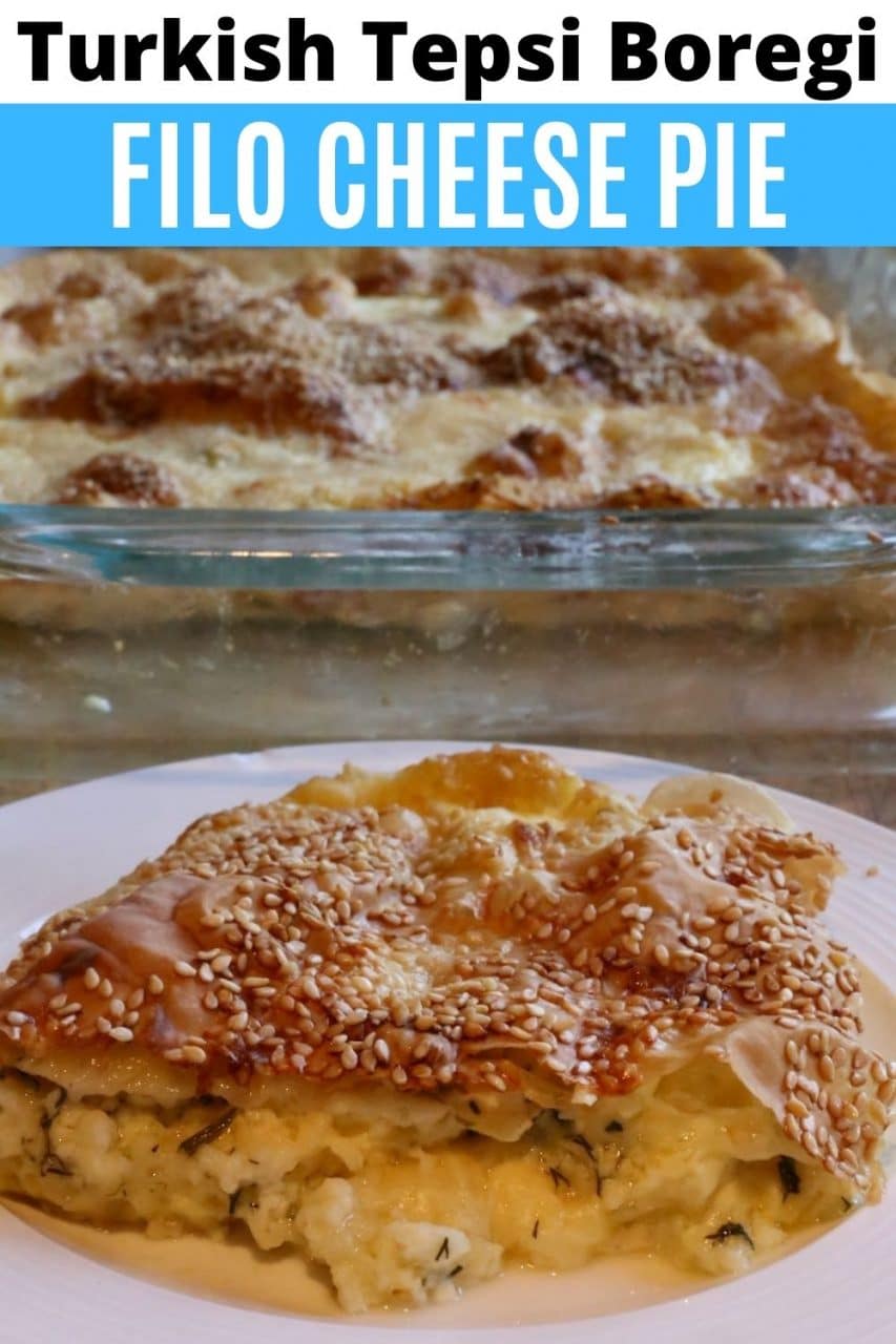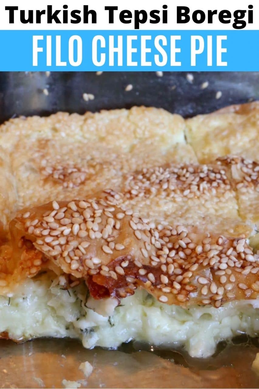 Tepsi Boregi is a traditional Turkish Pie featuring layers of crispy filo dough and a creamy cheese and herb filling.