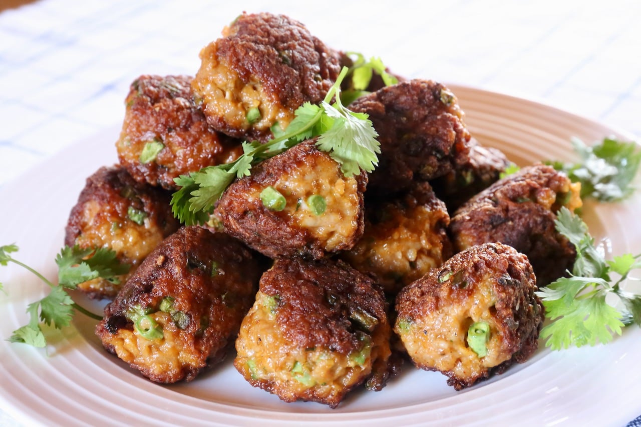 Thai Red Curry Pork Meatballs are a crispy snack packed full of flavour.