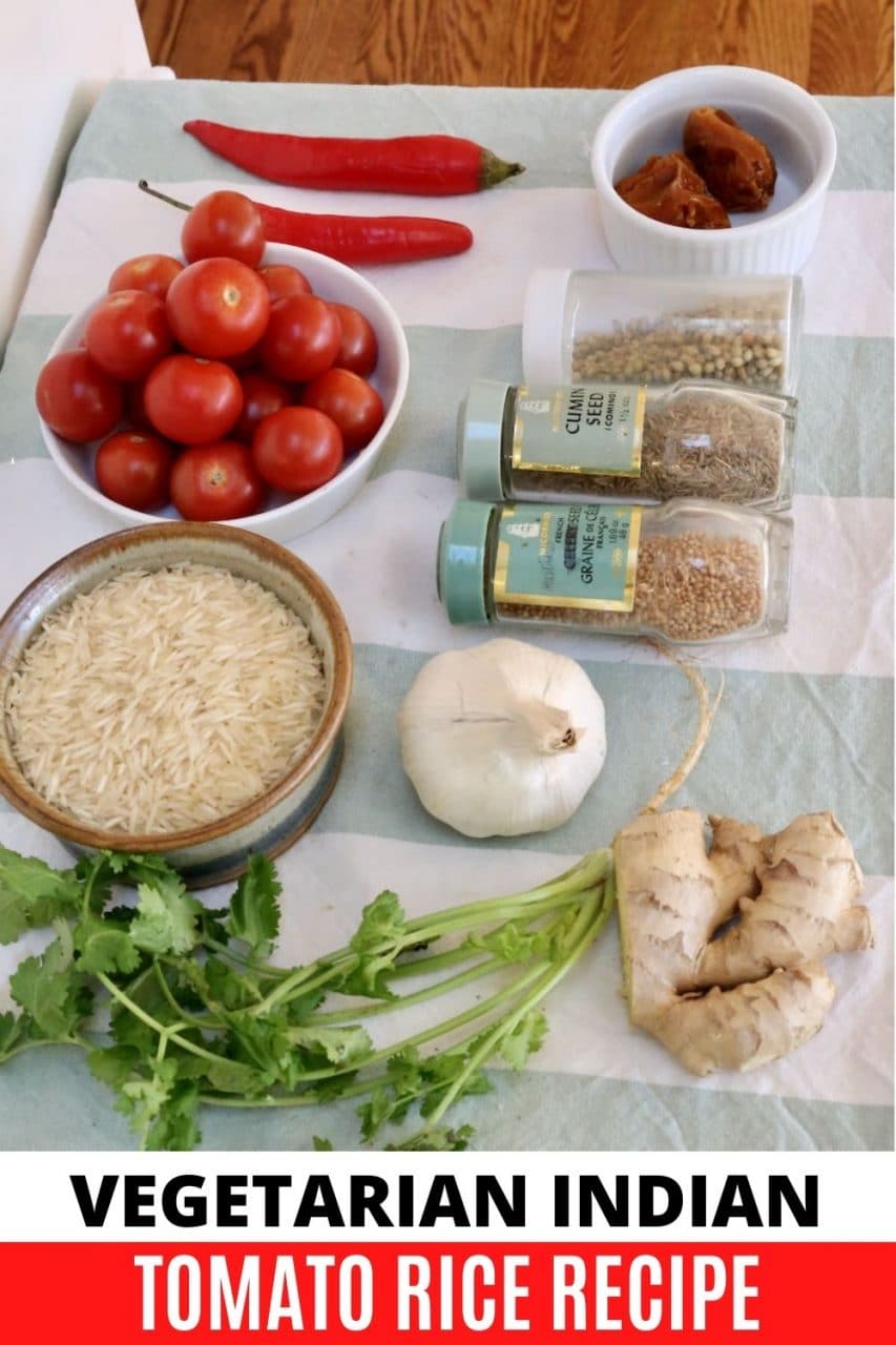 Easy Thakkali Biryani features basmati, tomatoes, chili, garlic, ginger and spices.