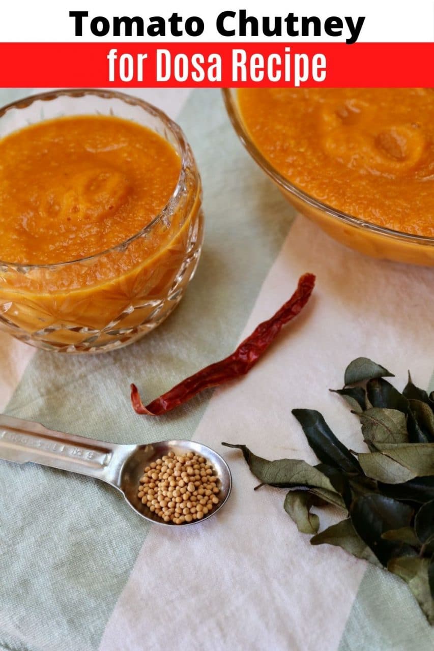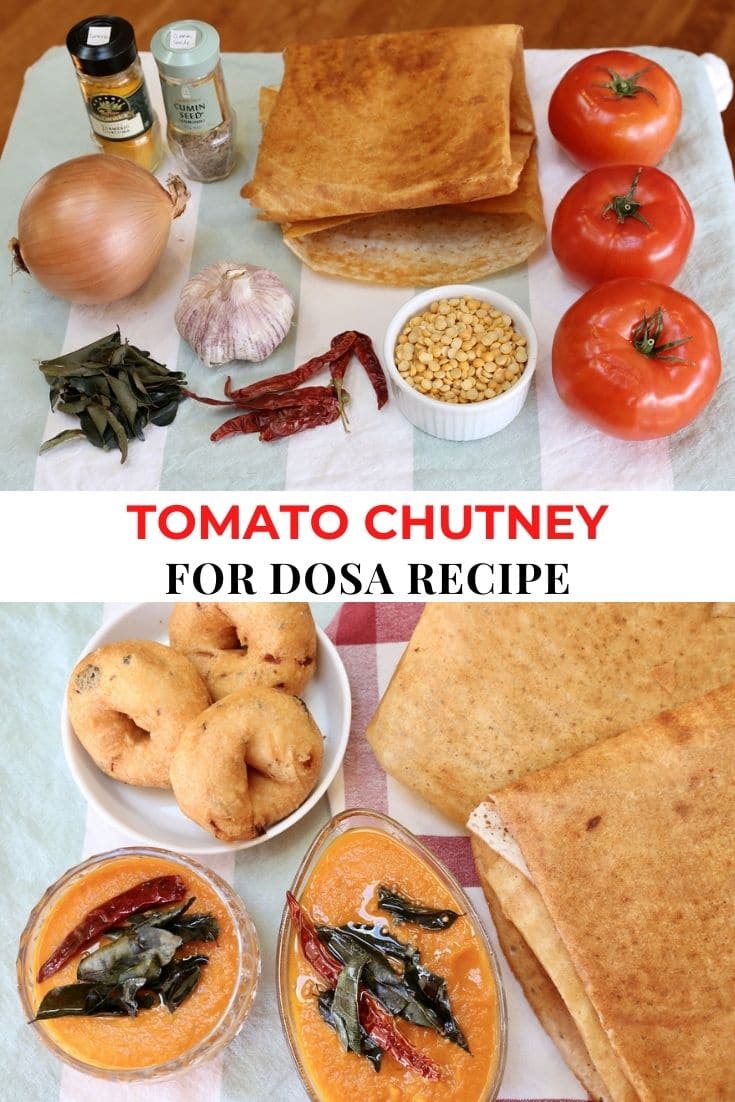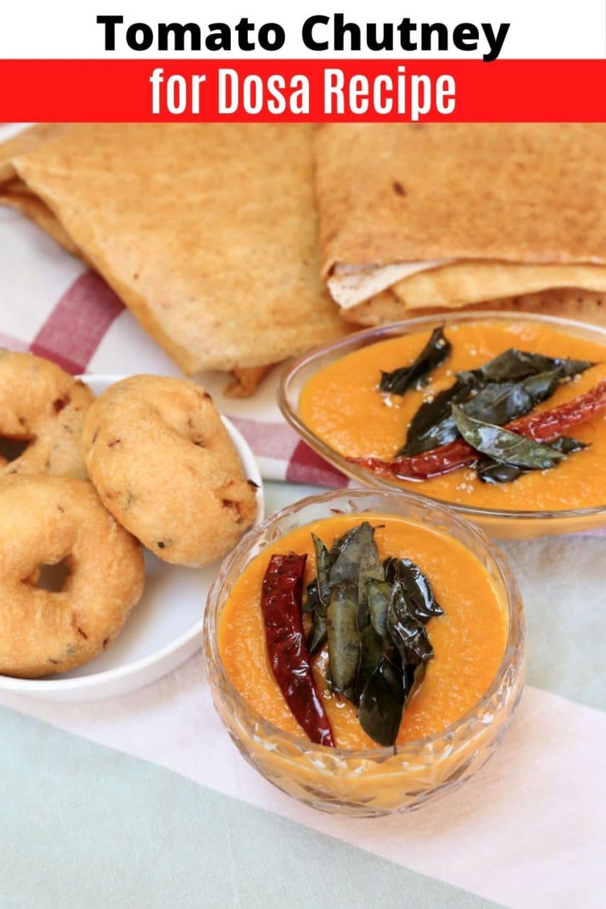Tomato chutney for dosa is a traditional South Indian condiment made with tomatoes, spices and herbs. It is usually served with South Indian breakfast dishes like dosa, idli and pongal.