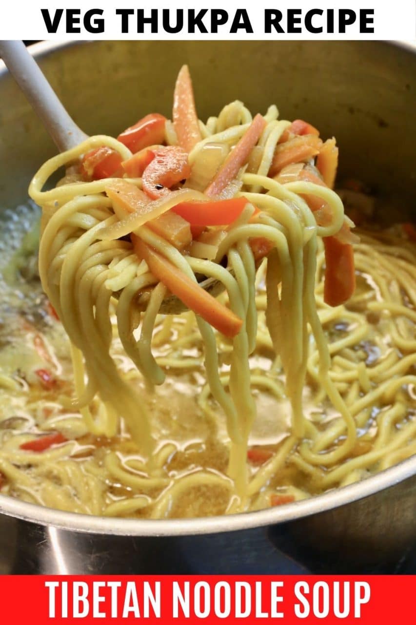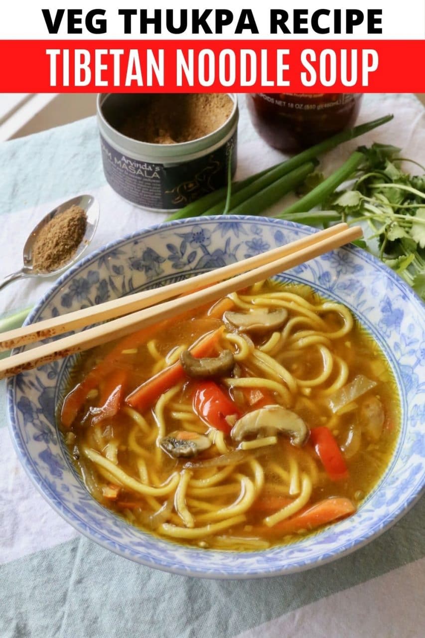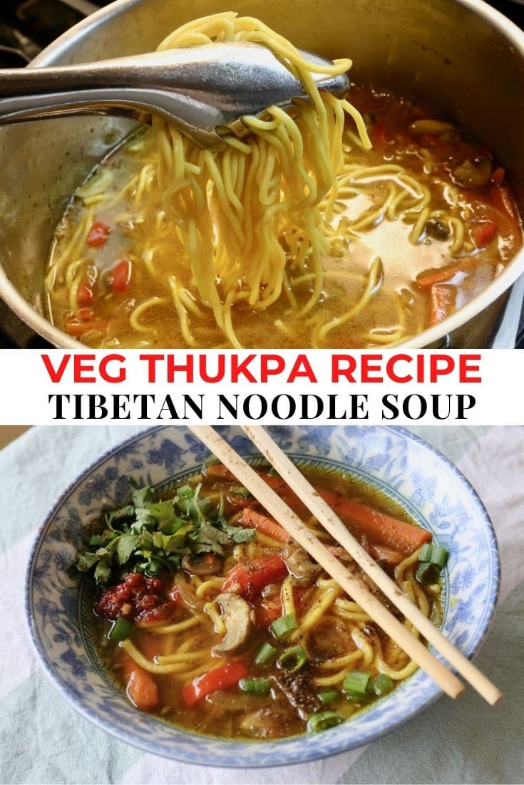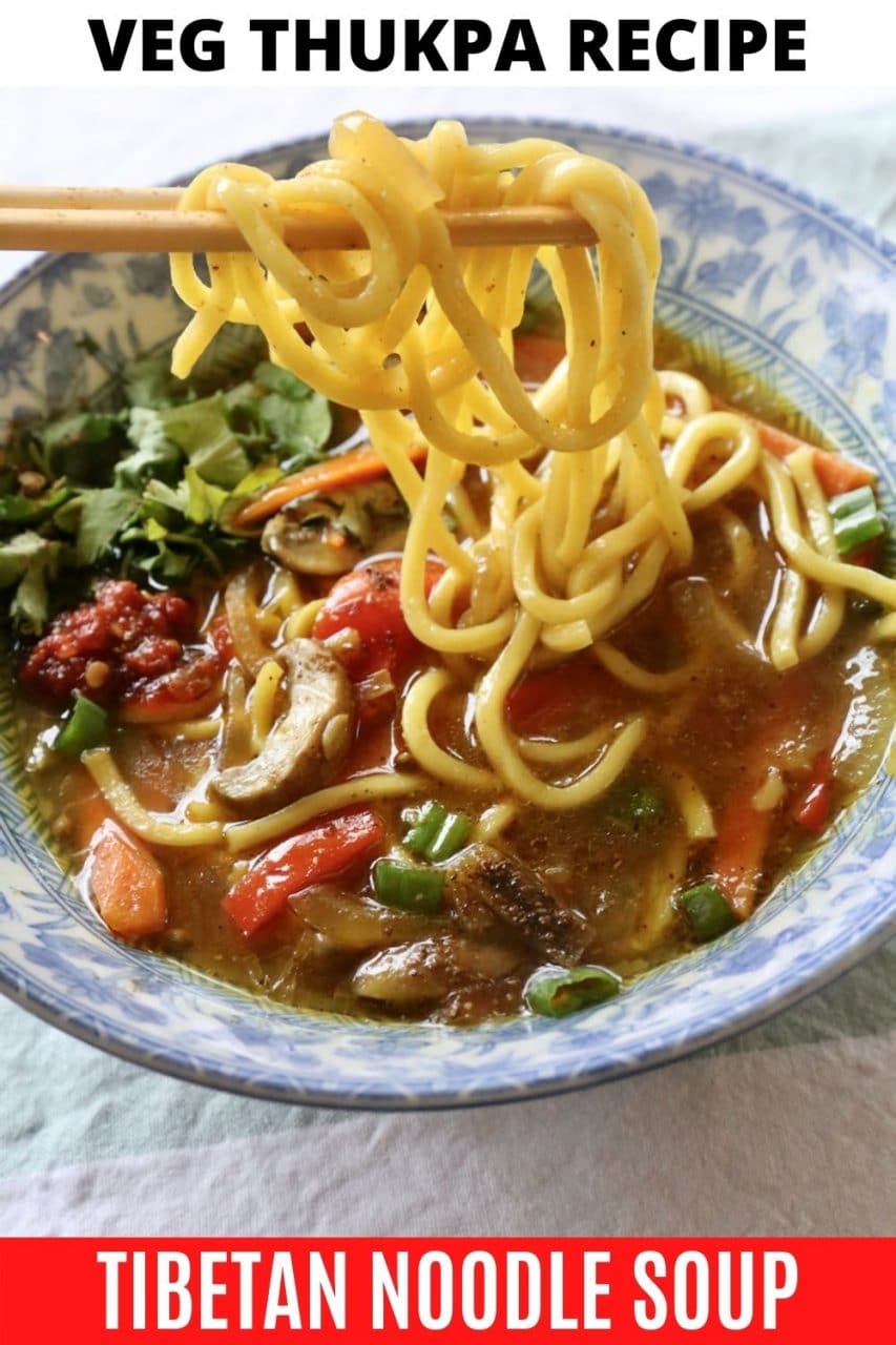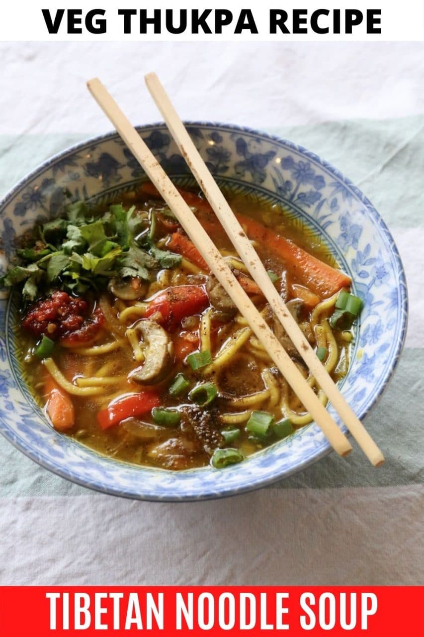 Thukpa is a Himalayan noodle soup, which can be served with meat, chicken or vegetarian and vegan ingredients.