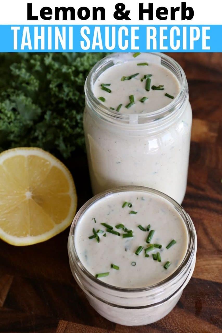This Lemon Herb Tahini recipe uses quality tahini that is thinned out with cold water until creamy and flavoured with cumin, garlic, lemon juice and fresh herbs like parsley, basil and chives.