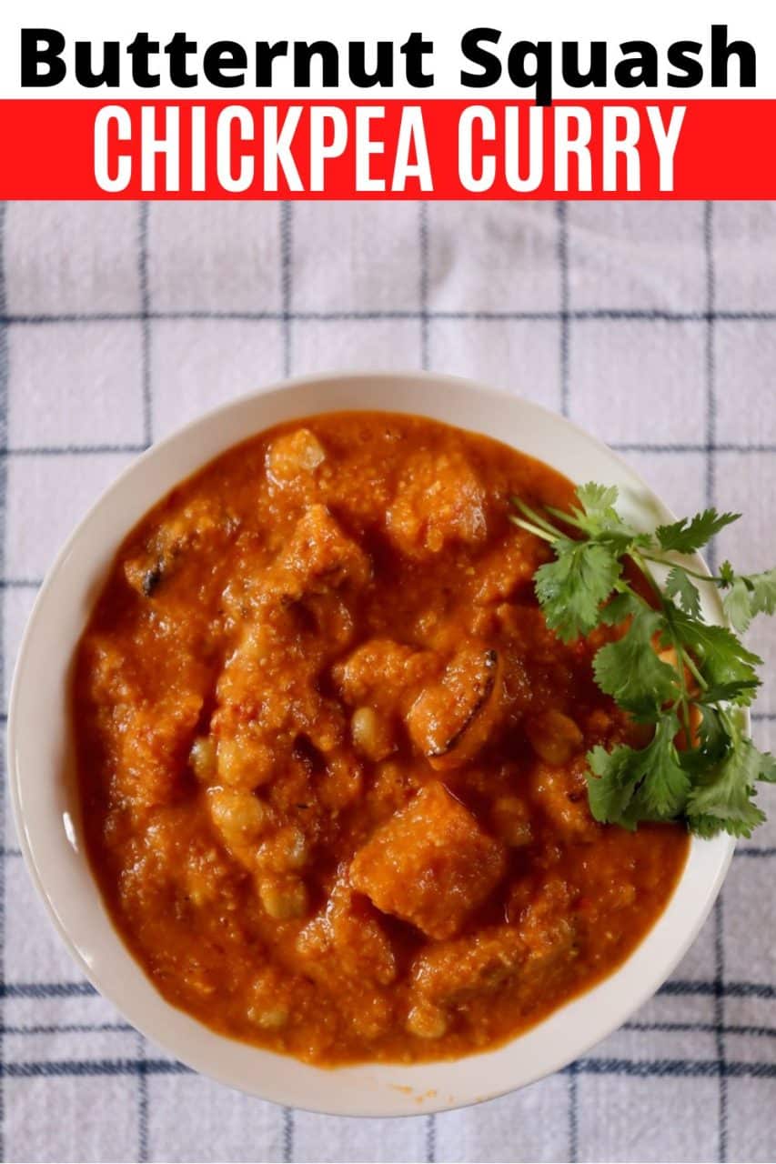 Butternut Squash Chickpea Curry is our favourite Indian vegan stew to serve for dinner on Meatless Mondays.