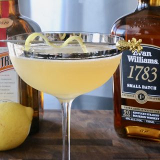 This easy 5-ingredient cocktail recipe features Bourbon whiskey, orange liqueur, fresh lemon juice, and simple syrup, which are shaken with ice in the perfect proportions then garnished in a coupe glass with a lemon twist.