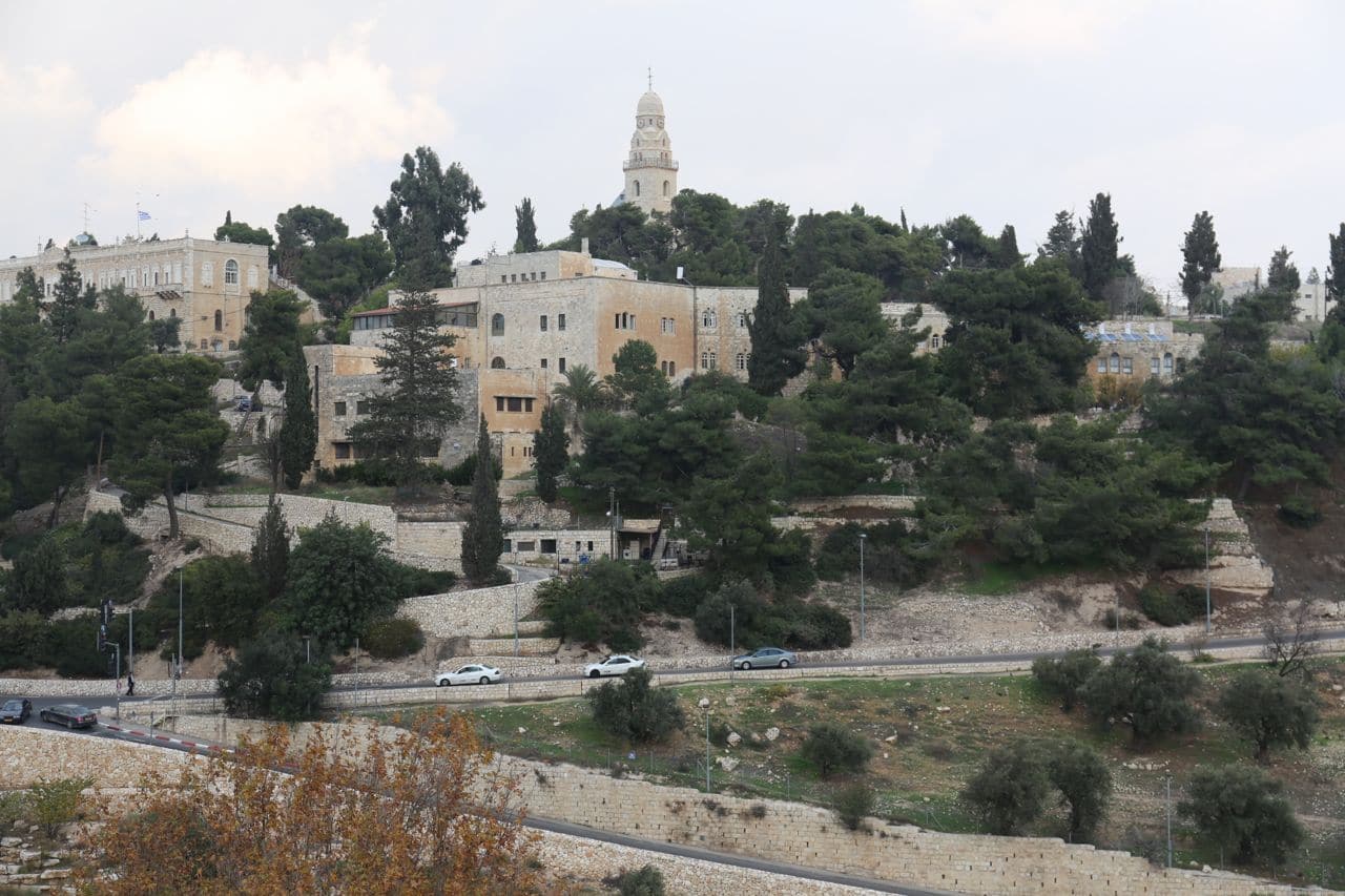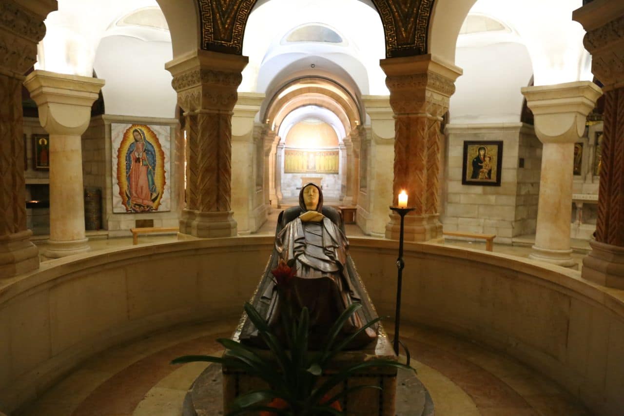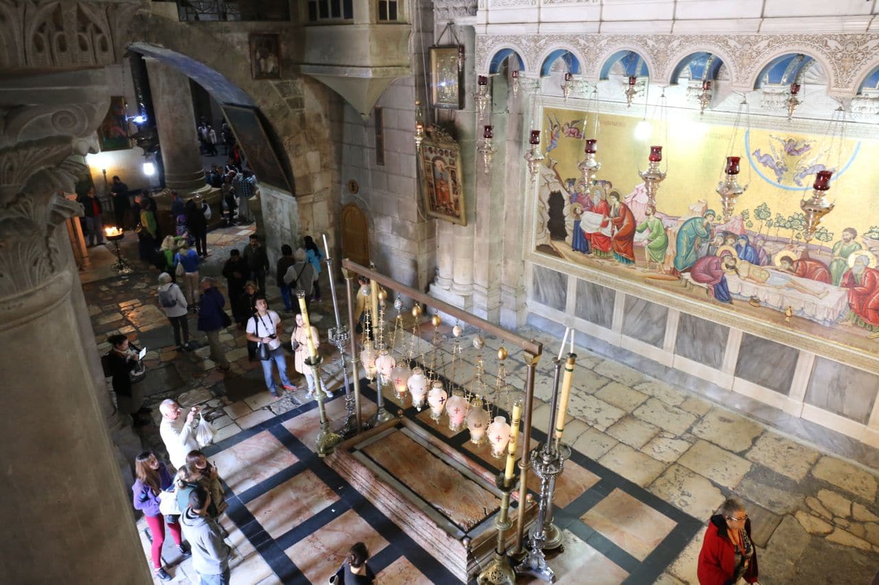 Southwest of the Old City, Mount Zion is recognizable by the distinctive conical roof of Dormition Abbey. This attractive white stone building was erected in 1900 and is traditionally believed to be on the site where Mary lived after her son’s crucifixion, and also the site of her death, an event marked by a mausoleum in the bright modern crypt, decorated with twelve columns. Down the Hill to the right and virtually in the shadow of the Abbey, the Coenaculum, is reputedly the room in which the Last Supper took place. Somewhat smaller than the one depicted in Leonardo da Vinci’s famous fresco, the peaceful room was actually built long after Jesus’s time, under the Crusaders, with their characteristic pointed arches.