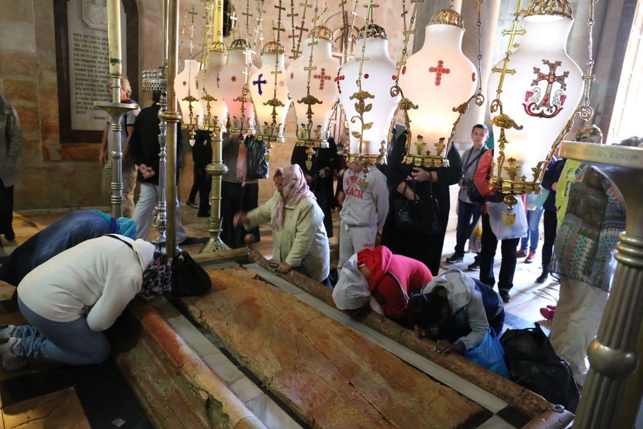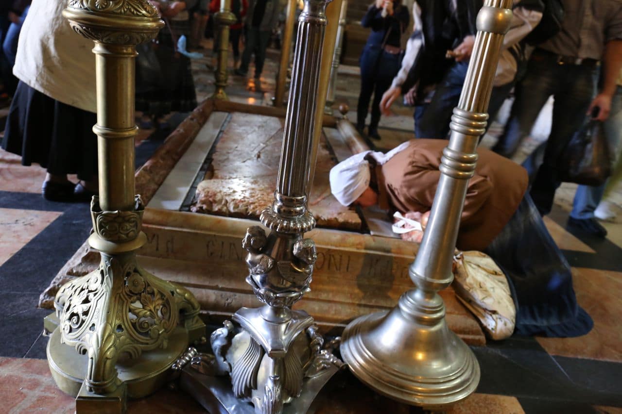 My jaw dropped as I past through the stoic doors which act as the entrance to The Church of the Holy Sepulchre, the holiest site in Chirstendom. Traditionally ascribed as the site of Christ’s crucifixion, burial and resurrection, it is the centre of Christian worship in Jerusalem and the most venerated Christian shrine in the world. The interior of the church is a vast and rambling arena of ponderous stone architecture and gloomy, smoke blackened recesses. It is perhaps the best people watching spot in the city, offering a moody space where dramatic shadows and excitable candles flicker as devout pilgrims enjoy a well deserved angelic moment.