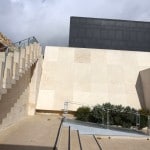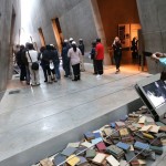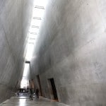 In 2005 a new complex was inaugurated, replacing the museum that originally opened in the 1970s. Designed by world-renowned Canadian architect Moshe Safdie, the new Holocaust History Museum is a prism-like triangular structure that penetrates the mountain from one side to the other, with both ends dramatically cantilevering into the open air. One of the basic guidelines for the museum’s design was to create a visitor’s route dictated by the evolving narrative, with a beginning, middle and end. A central 180-meter walkway was built with exhibition galleries on either side. Between each of these galleries is an impassable gap extending along the breadth of the prism floor. The gaps constitute a physical obstacle, guiding the visitor into the adjacent galleries, yet always enabling eye contact with either end of the prism. The prism is therefore a longitudinal axis of historical memory, crossed by visitors as they move from one gallery to the next and from one subject to another.