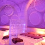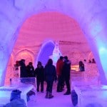 Once finished sucking the mustard off my fingers and plopping the last dill pickle morsel into my mouth we found ourselves in a taxi bound for Snow Village Canada located in snow covered Parc Jean Drapeau. Over the next hour we enjoyed an exclusive private tour by a friendly member of the Snow Village team. Montreal’s distinctive concept was developed and launched by Scandinavian innovators and includes an Ice Hotel offering 10 standard rooms and 15 prestige suites, igloos, a restaurant accommodating 100 guests and a bar with terrace seating up to 250. Oh, and they have an Ice Chapel where couples have an unforgettable (and chilly) opportunity to get married in a mini cathedral made of ice. Frigid Romance!